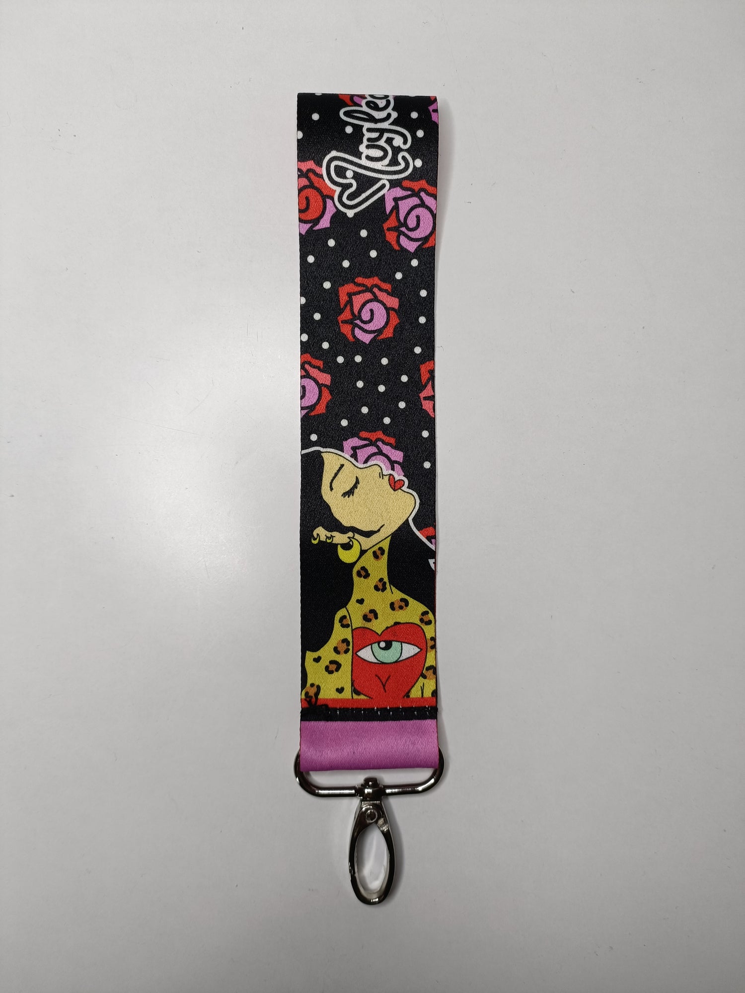 El accesorio perfecto para llevar a juego de tu bolso. Hechos de cinta impresa por ambas caras y mosquetón.